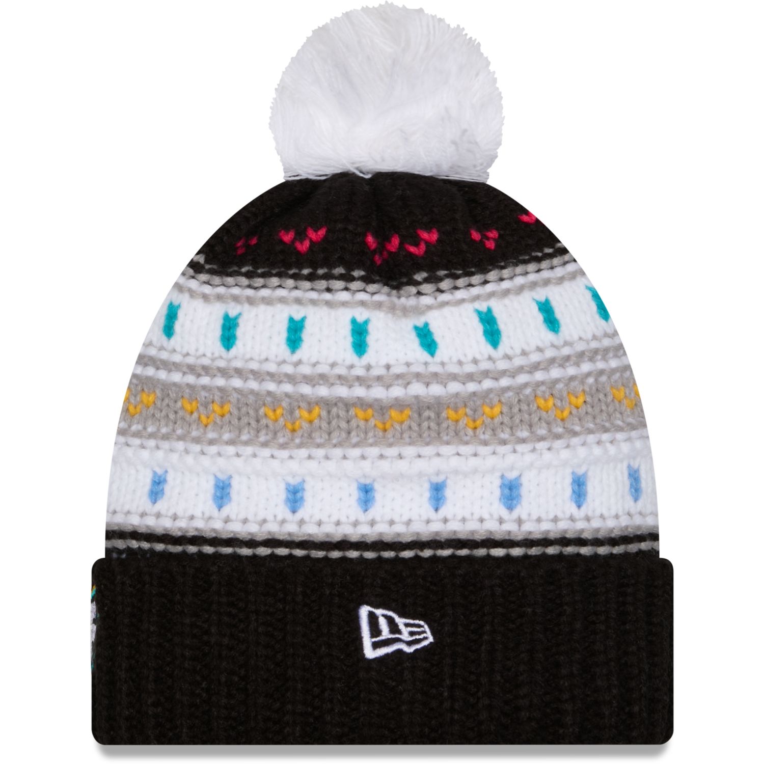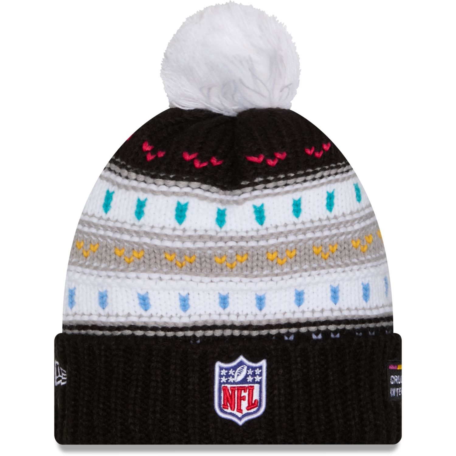 Die warme Strickmütze mit gesticktem Team-Logo, NFL Shield und farbenfrohem Muster bietet Komfort und Style für kalte Tage.