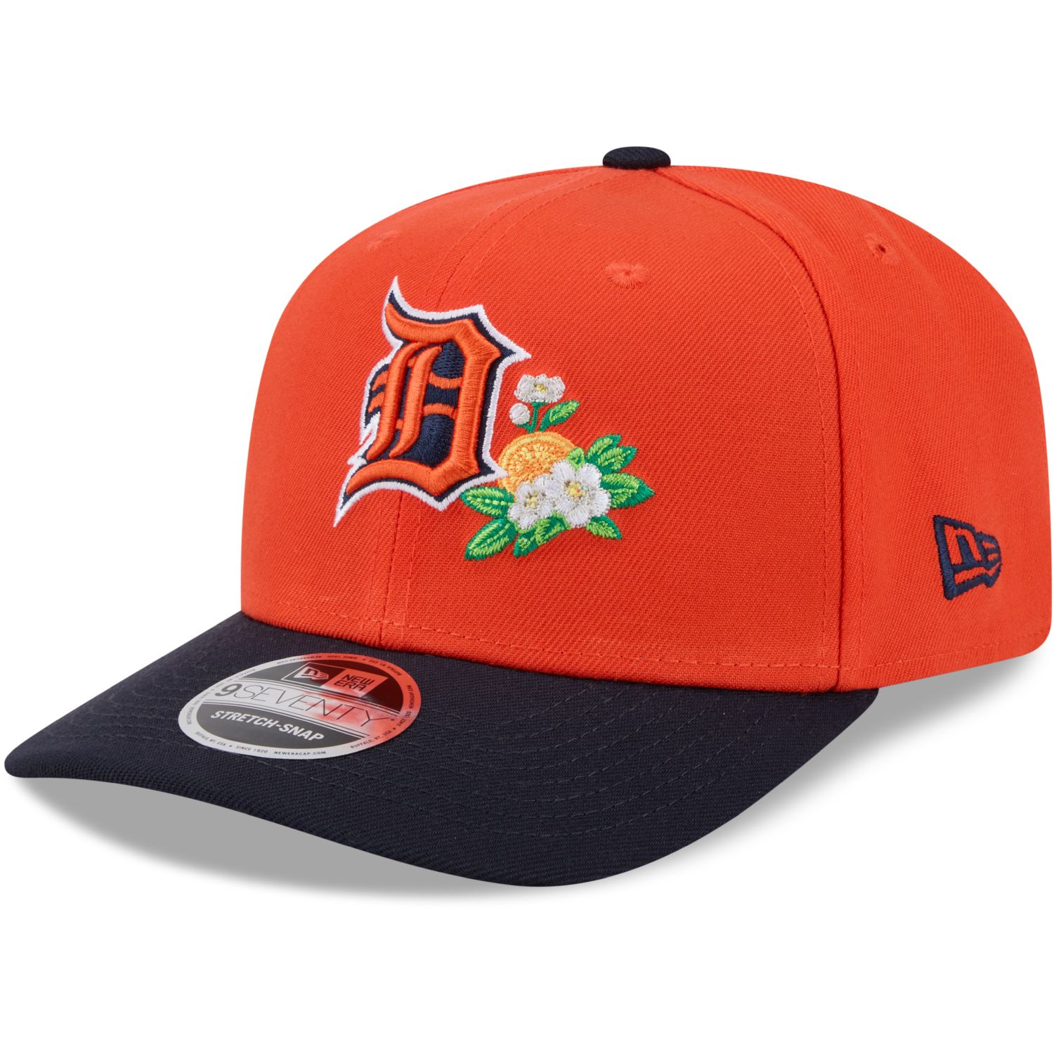 Die neuartige 9Seventy Stretch-Fit Cap hat eine feste Krone, leicht gebogenen Schirm und Snapback-Verschluss.