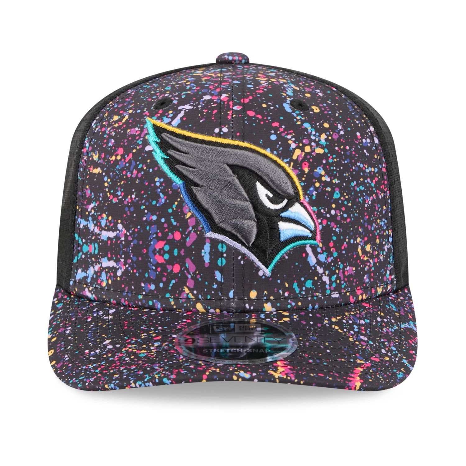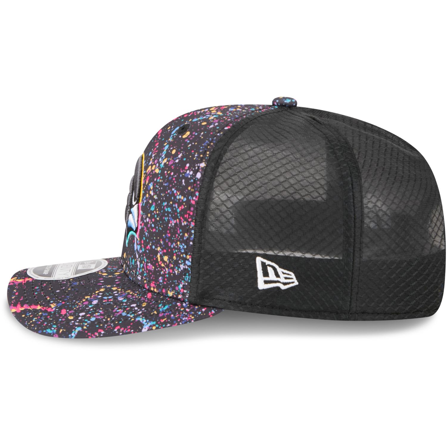 The bold multicolor splatter design and embroidered team logo make it a real eye-catcher. With its 9SEVENTY shape, curved visor, breathable mesh back, and Stretch Fit technology, it provides a secure and comfortable fit – without the need for a closure.