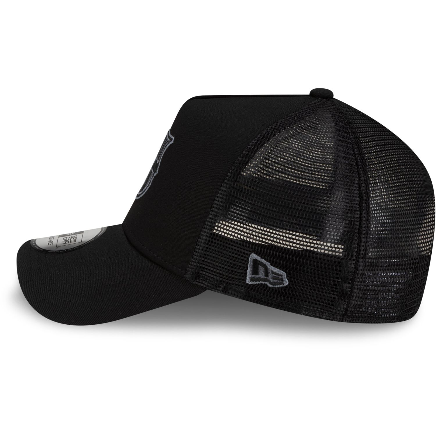 Trucker cap with an adjustable back closure for a customized fit.