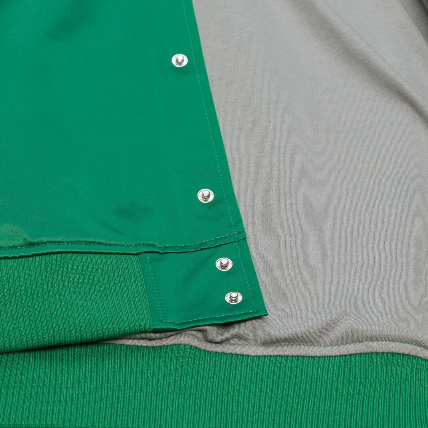 Striped rib trim at collar, cuffs and waistband. Snap front closure. Welt pockets. Embroidered... more