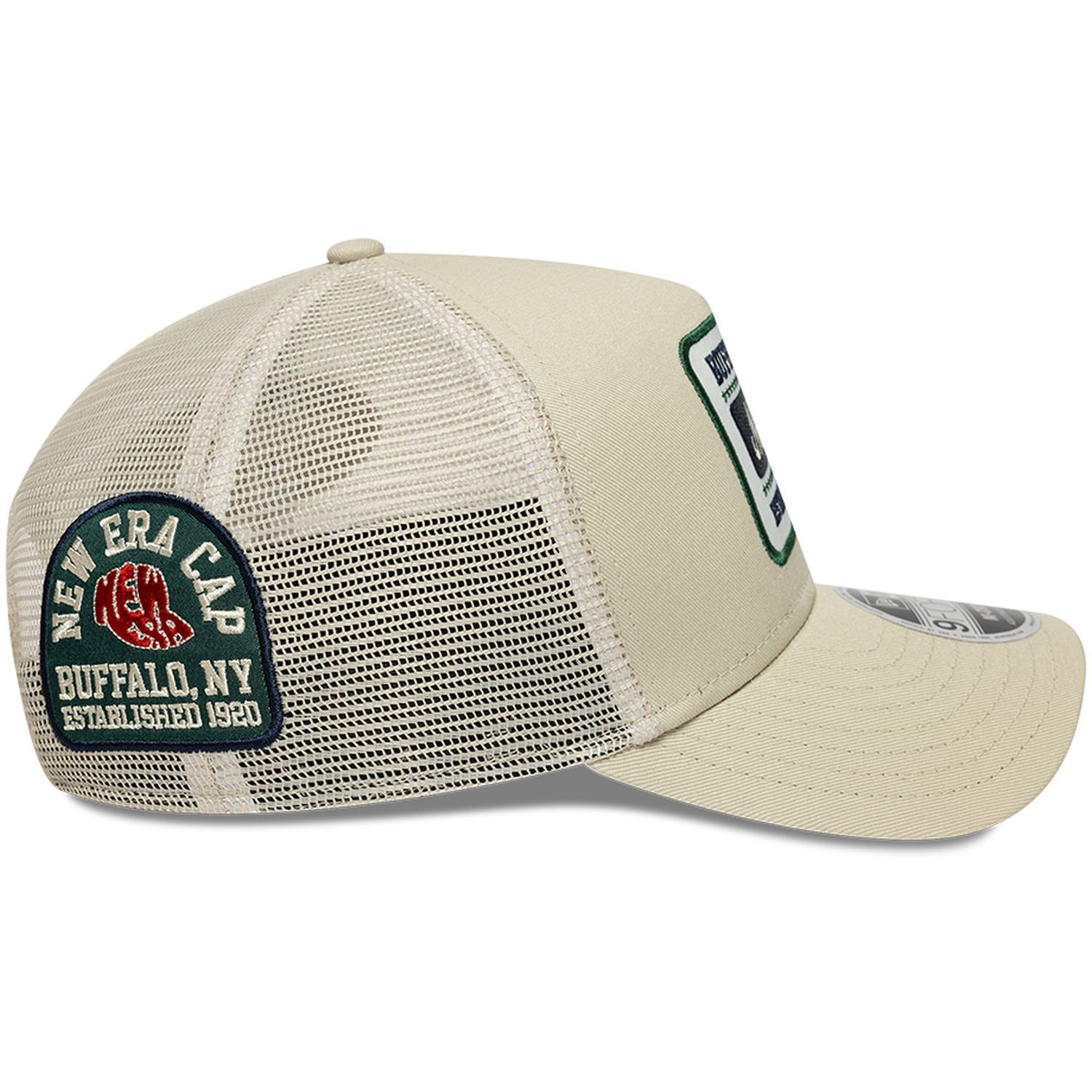 9TWENTY trucker style cap with an unstructured, flat crown and mesh back.