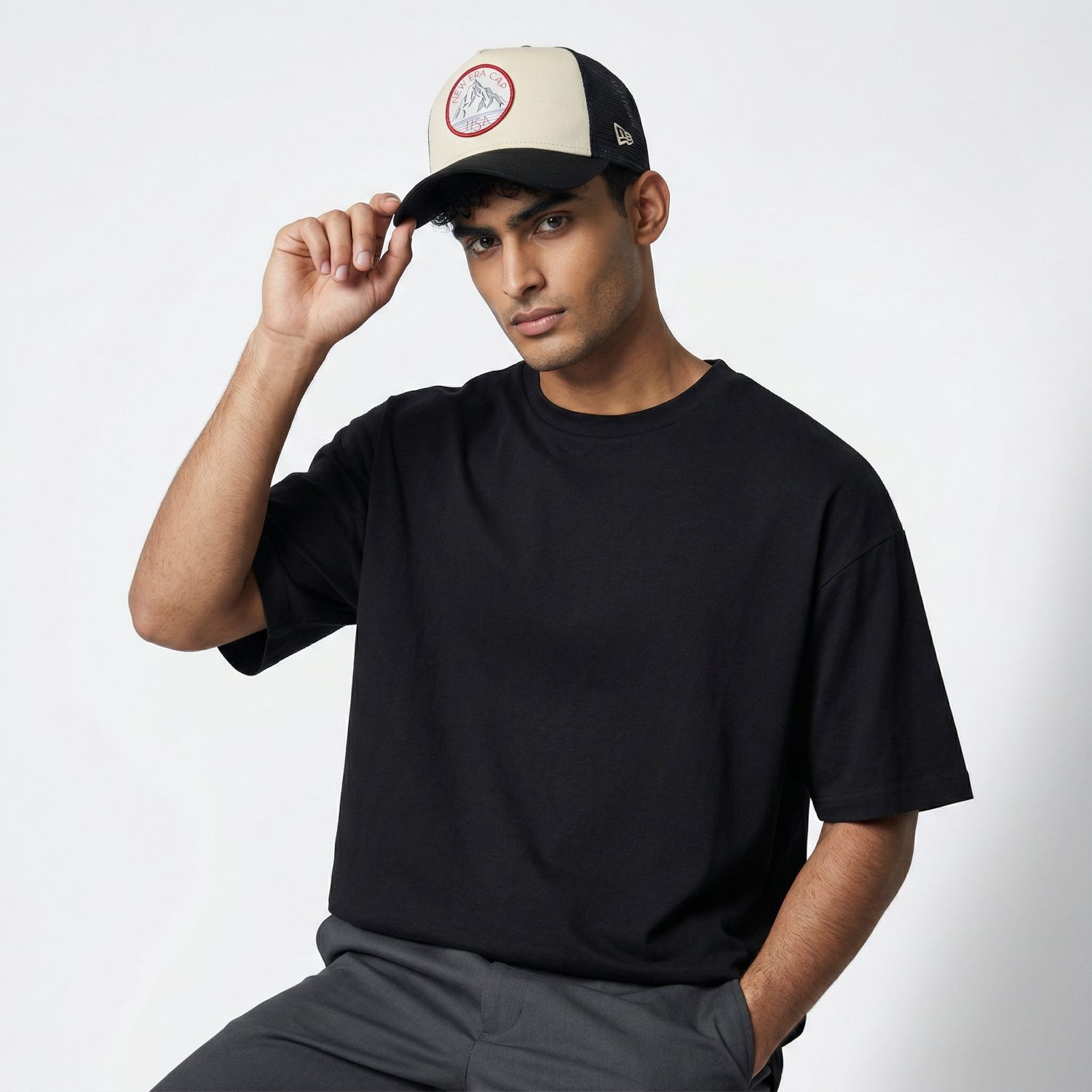 Customer evaluation for "New Era A-Frame Mesh Trucker Cap - OUTDOOR PATCH black"
