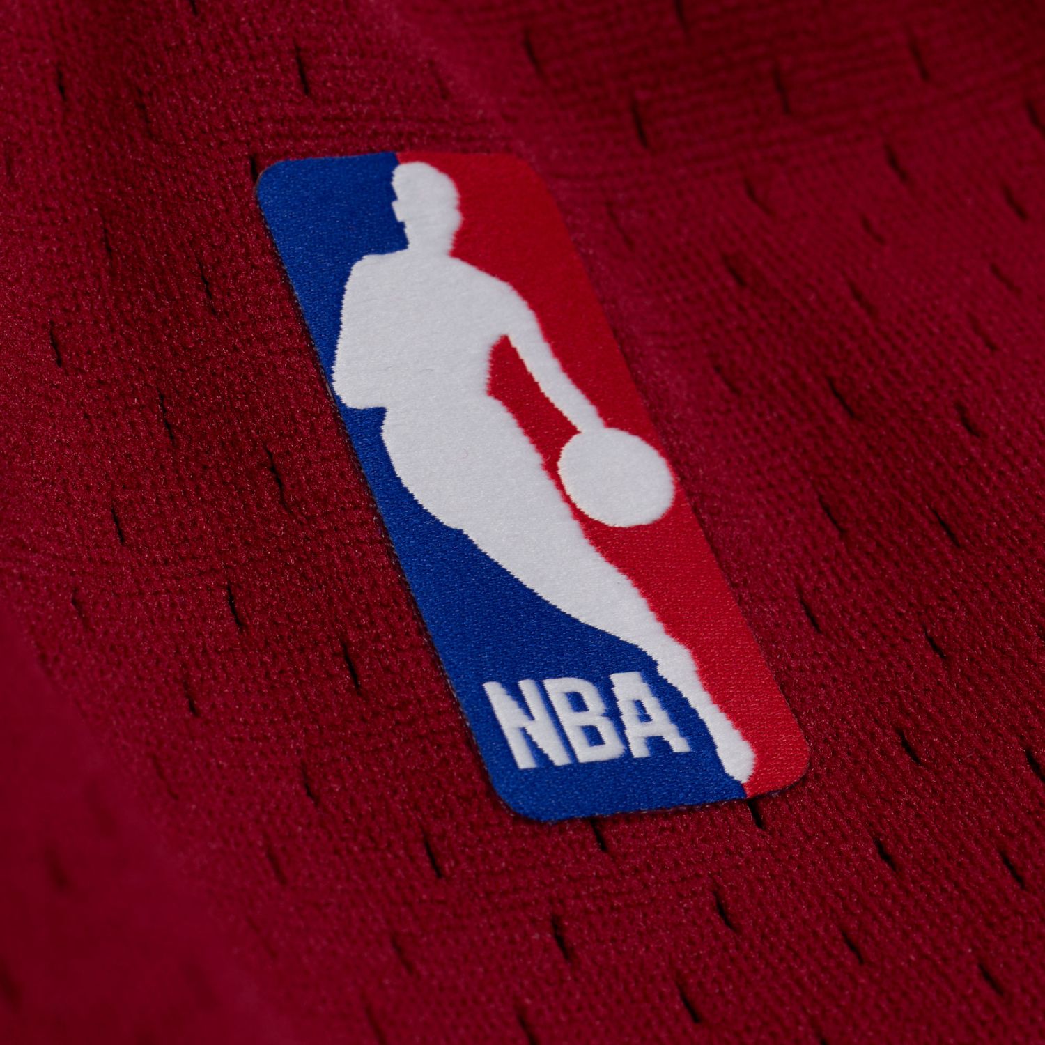 NBA logoman woven heat seal label at front leg.