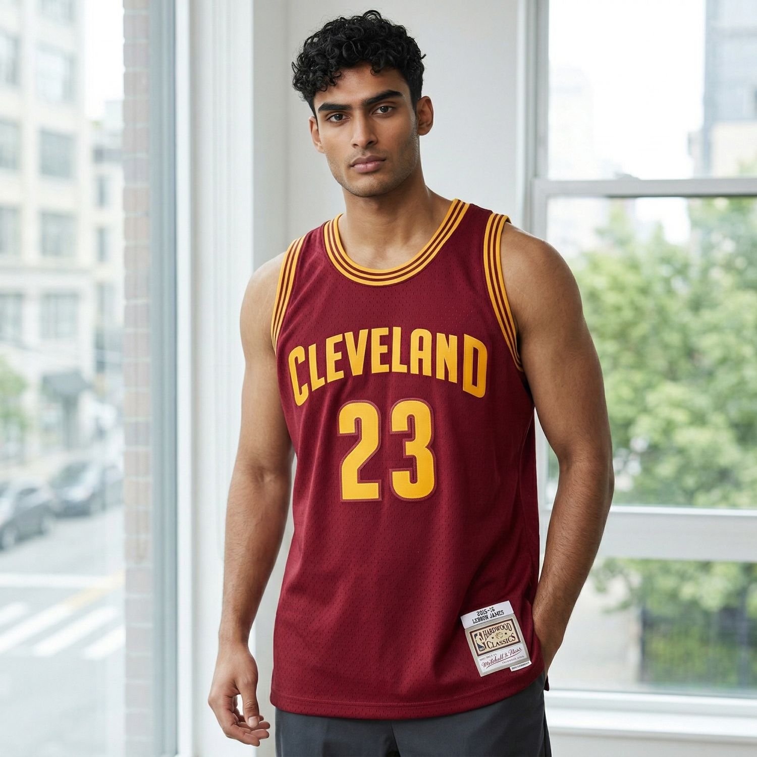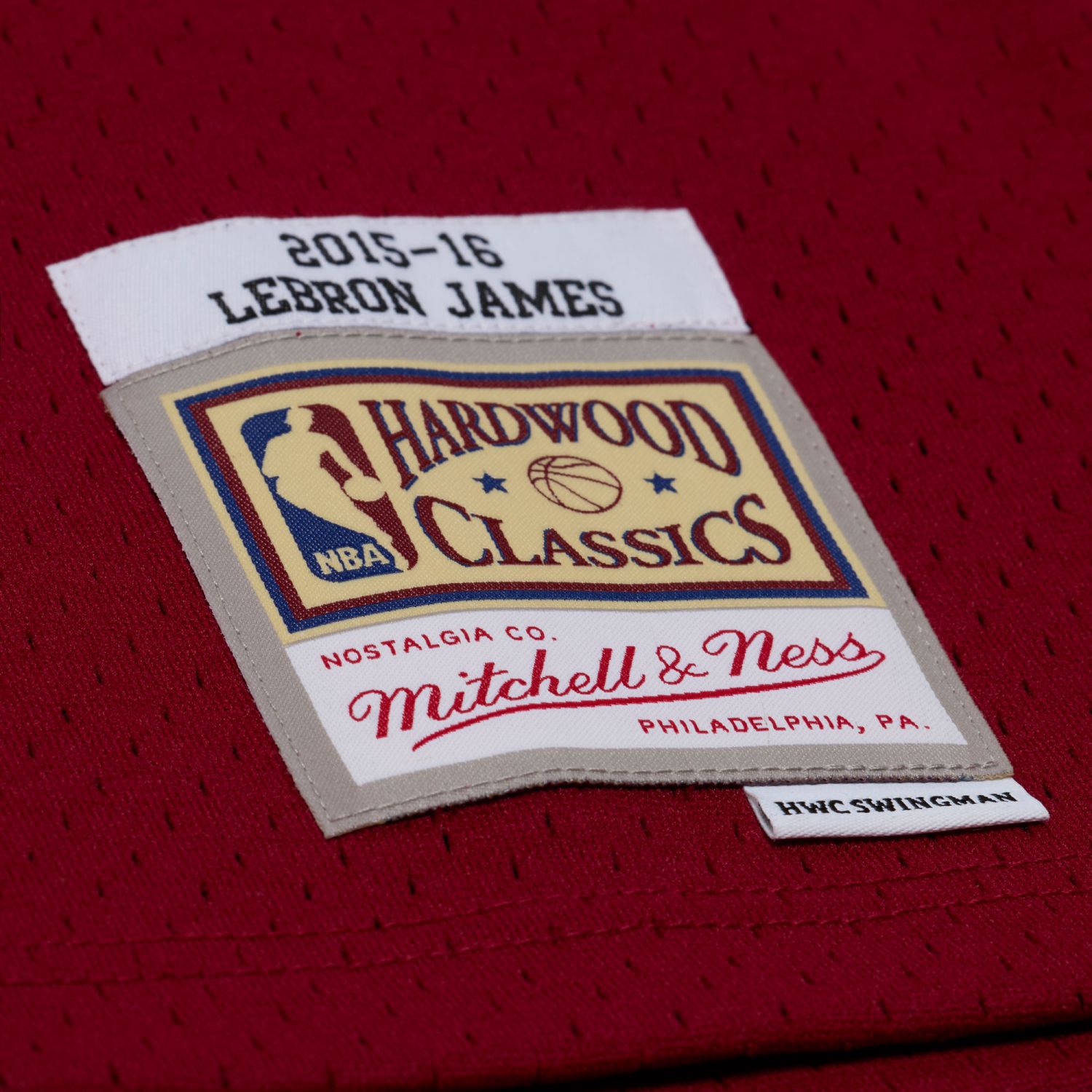 Mitchell & Ness HWC Swingman woven jocktag and woven label player name/year ID at lower left front.