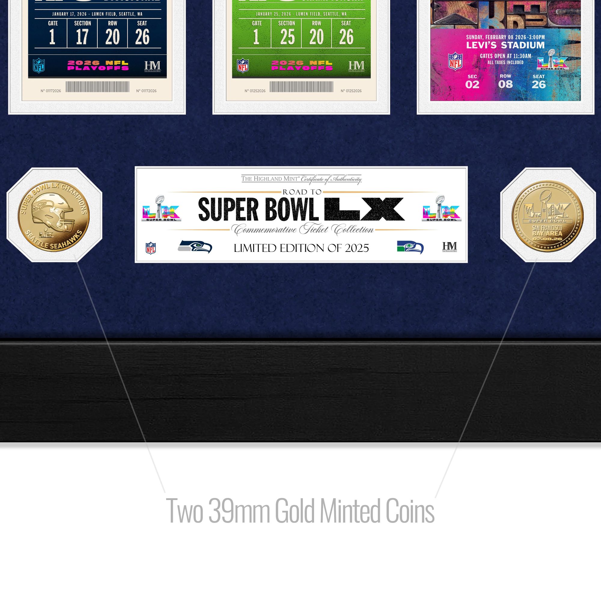 Ce collector encadré met en valeur les victoires clés du parcours des Seahawks jusqu’au titre du...plus