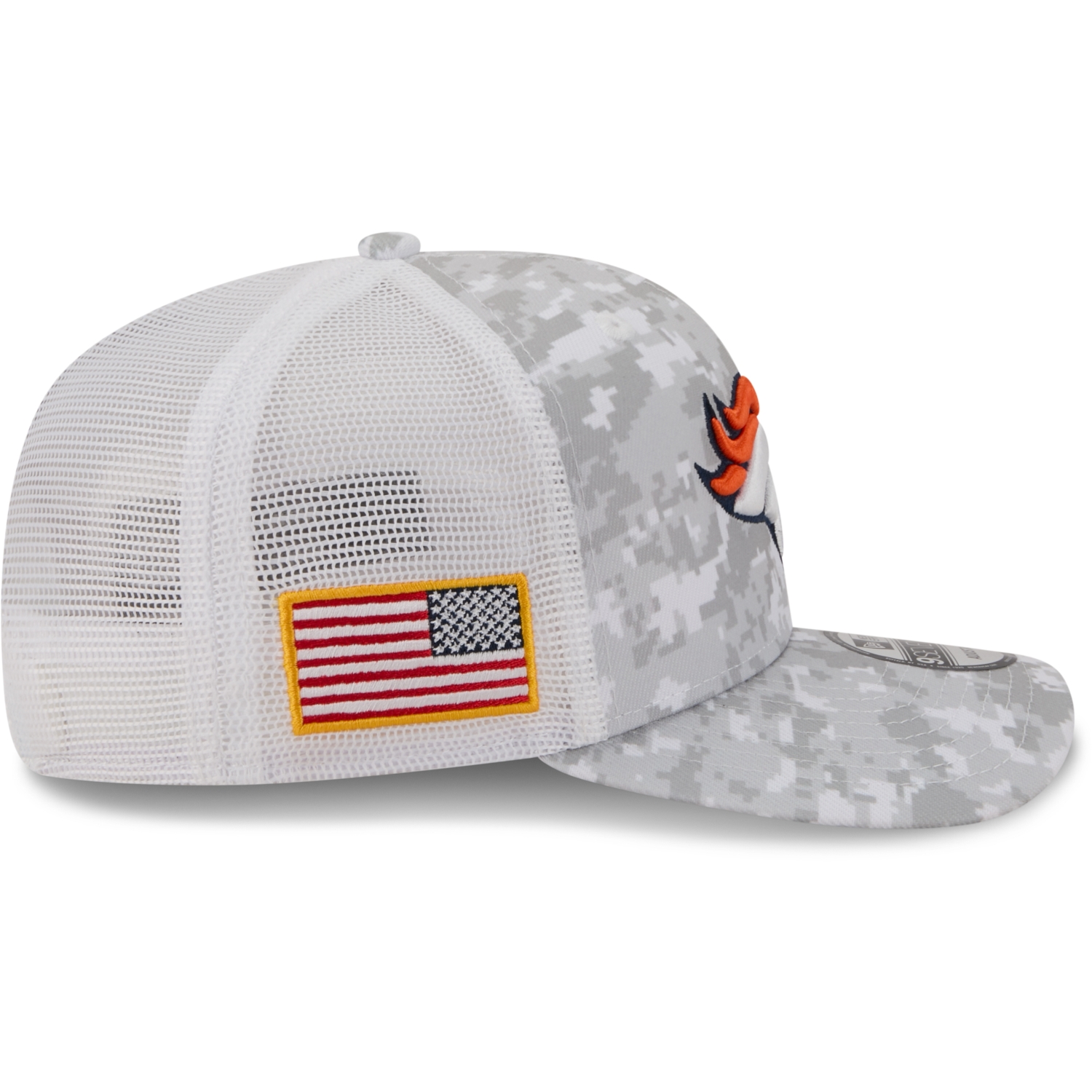 Auf der Vorderseite zeigt sich das aufwendig gestickte Teamlogo, seitlich ist die US-Flagge angebracht, und auf der Rückseite befindet sich das gestickte New Era Salute to Service-Logo – ein Symbol für Teamspirit, Respekt und Zusammenhalt.