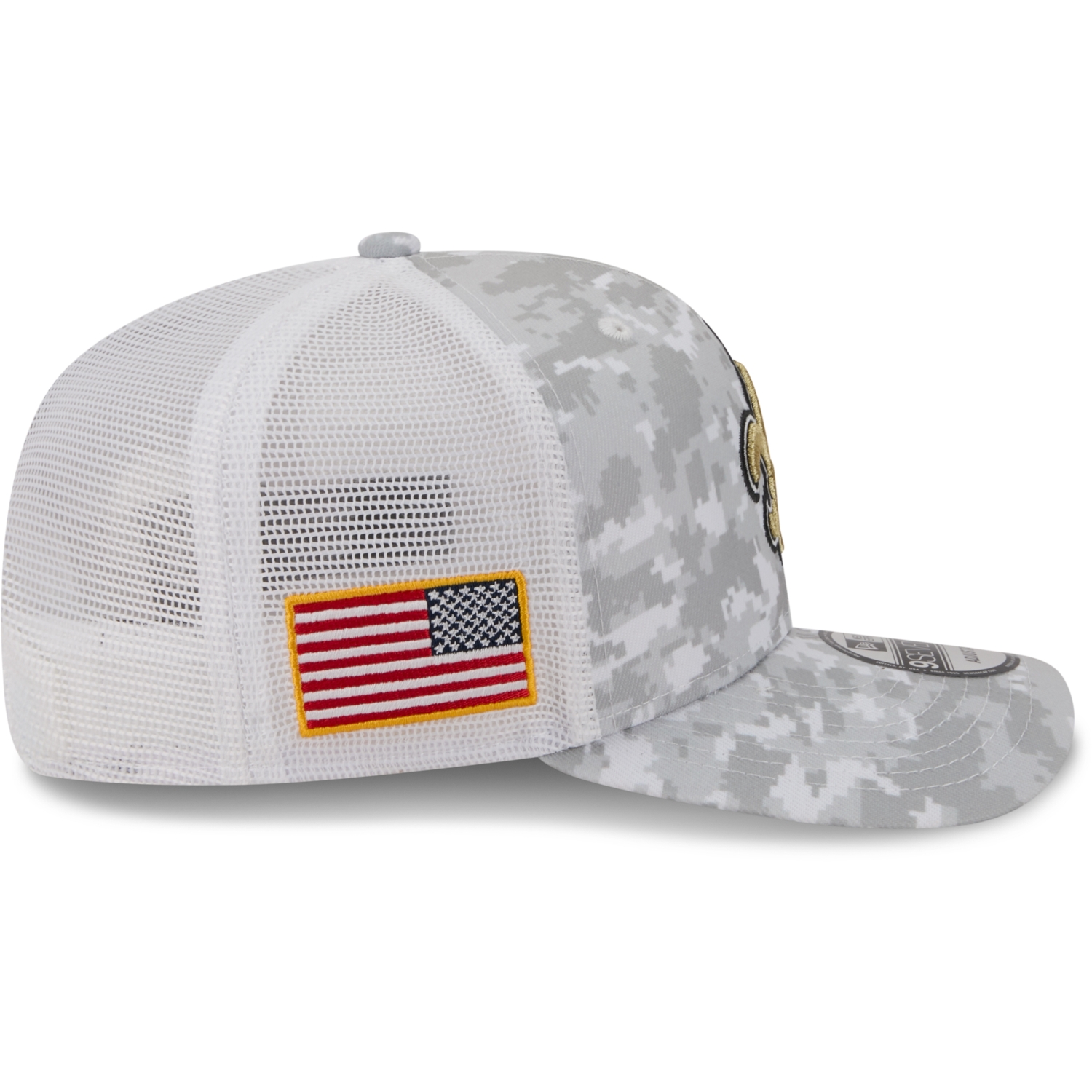 Auf der Vorderseite zeigt sich das aufwendig gestickte Teamlogo, seitlich ist die US-Flagge angebracht, und auf der Rückseite befindet sich das gestickte New Era Salute to Service-Logo – ein Symbol für Teamspirit, Respekt und Zusammenhalt.