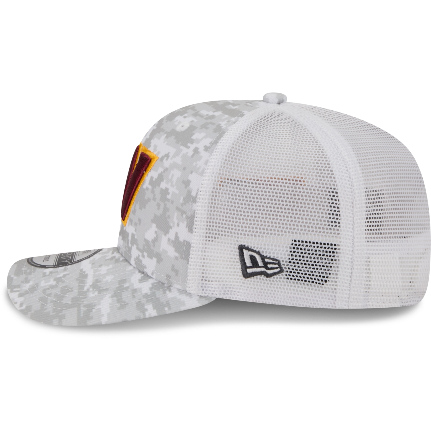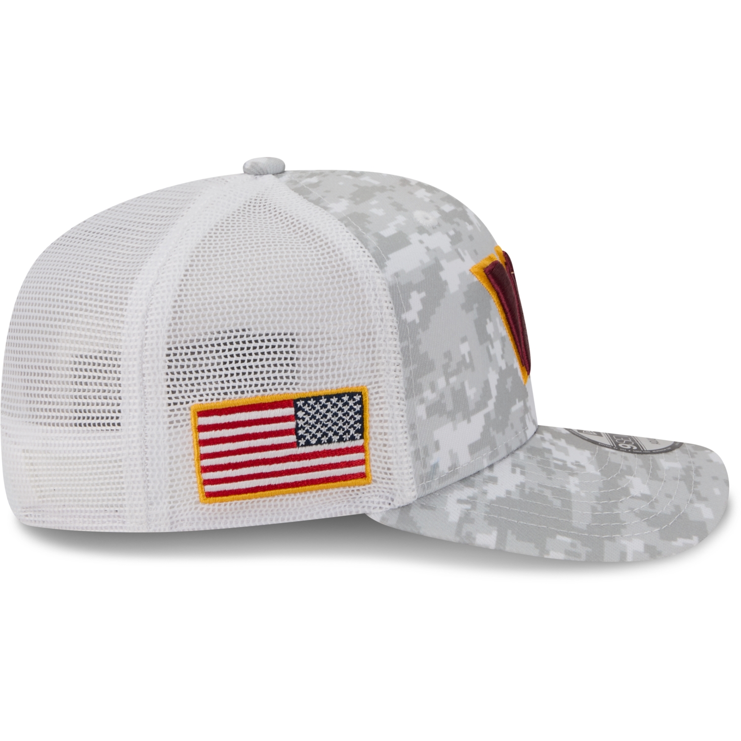 Auf der Vorderseite zeigt sich das aufwendig gestickte Teamlogo, seitlich ist die US-Flagge angebracht, und auf der Rückseite befindet sich das gestickte New Era Salute to Service-Logo – ein Symbol für Teamspirit, Respekt und Zusammenhalt.